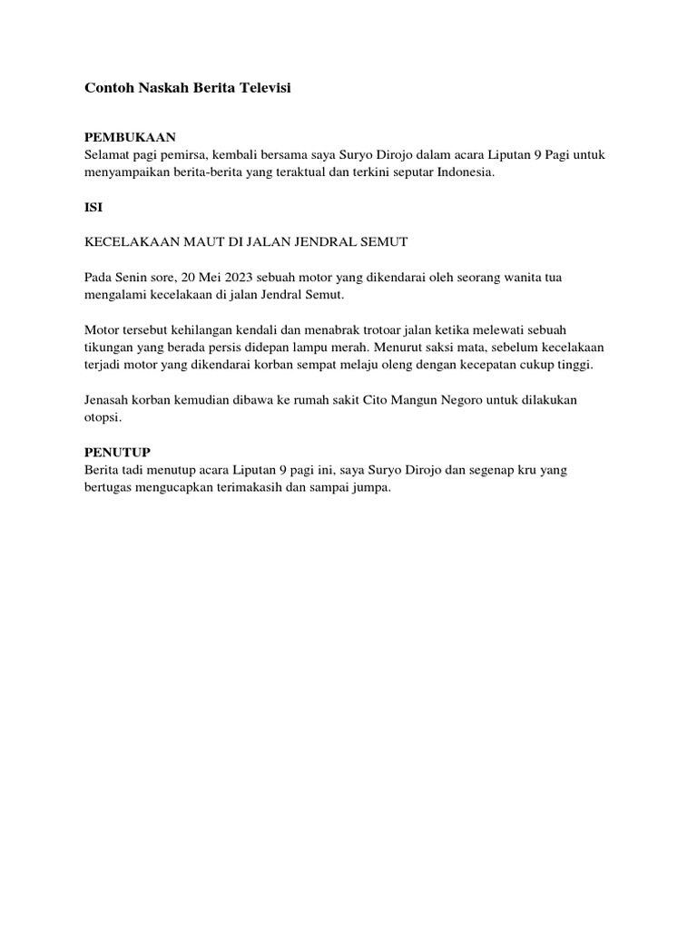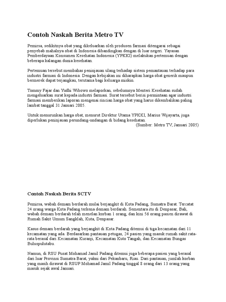 Doc Contoh Naskah Berita Televisi Nona Ayy Melvy Christian Academia Edu